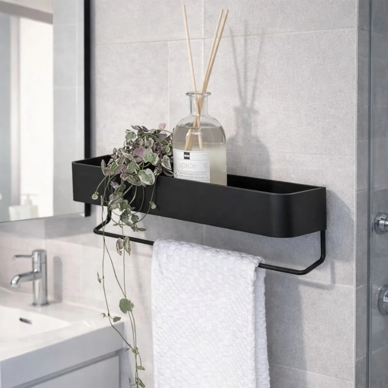 - للزليج الأبيض أو الرخامي: الحاملات السوداء المطفية (Matte Black) هي الخيار الأرقى. اللون الأسود يكسر الرتابة ويعطي طابعاً “مودرن” قوياً.