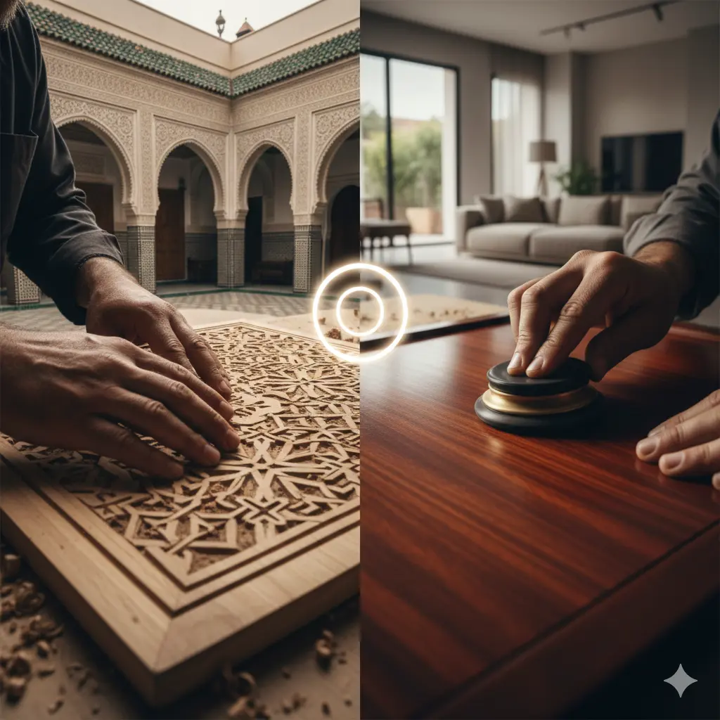 في هذا الدليل الشامل، سنغوص معاً في عالم النجارة التقليدية المغربية، لنكشف لك أسرار “المعلم” التي لا يخبرك بها الكثيرون. سنقارن بين المتانة، والجمال، والتكلفة، لنساعدك على اتخاذ قرار استثماري يدوم لعقود.